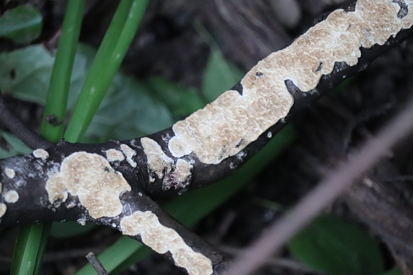 Once again, the birds showed me the way. I noticed that several of the smaller warblers that didn’t come to the feeders would spend time hopping around the brush piles. The tight spaces, tasty decomposing vegetation and insulated warmth of the pile was a haven for a variety of insects, which made it an equally desirable buffet destination for the birds. Turkey tail and crust fungi would also take advantage of this feast of wood, adding to the species diversity in my yard.